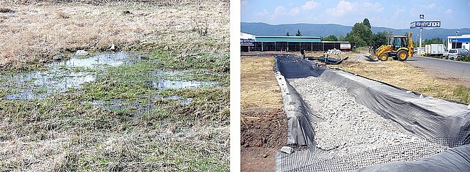 Vzhledem k tomu, že podloží bylo v této lokalitě tvořeno výhradně zeminami třídy F7-F8 s vysokou úrovní hladiny spodní vody, bylo před provedením geodesky nutné realizovat důslednou separaci materiálů zásypu a podloží.