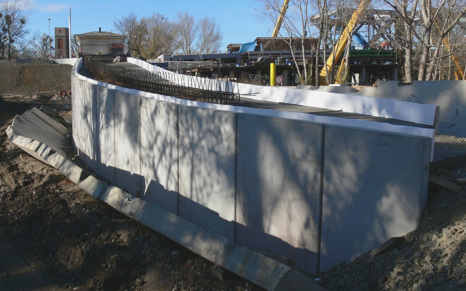 V rámci výstavby 1. části plánovaného provozního úseku nové tratě MHD v Bratislavě - Petržalce byla realizována rampa pro cyklisty v blízkosti zastávka Viedenská. Nájezd na rampu je řešený jako vyztužená opěrná konstrukce s lícem z velkoplošných betonových panelů certifikovaného systému GeoWall Panel.