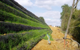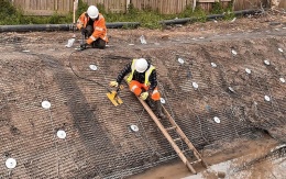 Geobuňková struktura jako řešení pro násyp na měkkém podloží.