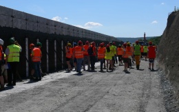 Exkurze na stavbu pilotního projektu nového opěrného systému GeoWall Panel na modernizované trati Rokycany - Plzeň, 25.04.2017.