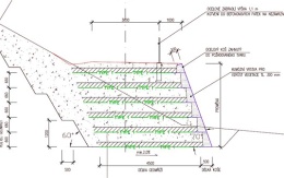 V inkriminovaném úseku docházelo k rozvoji svahových nestabilit, které si vyžádaly rychlou nápravu a realizaci opěrné konstrukce. Ta byla provedena jako vyztužená zemní konstrukce…