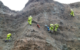 Využití geomříže Tensar TriAx jako ochrana horníků před pádem uvolněných úlomků horniny ze stropů štol v uhelných dolech v americké Pensylvánii.