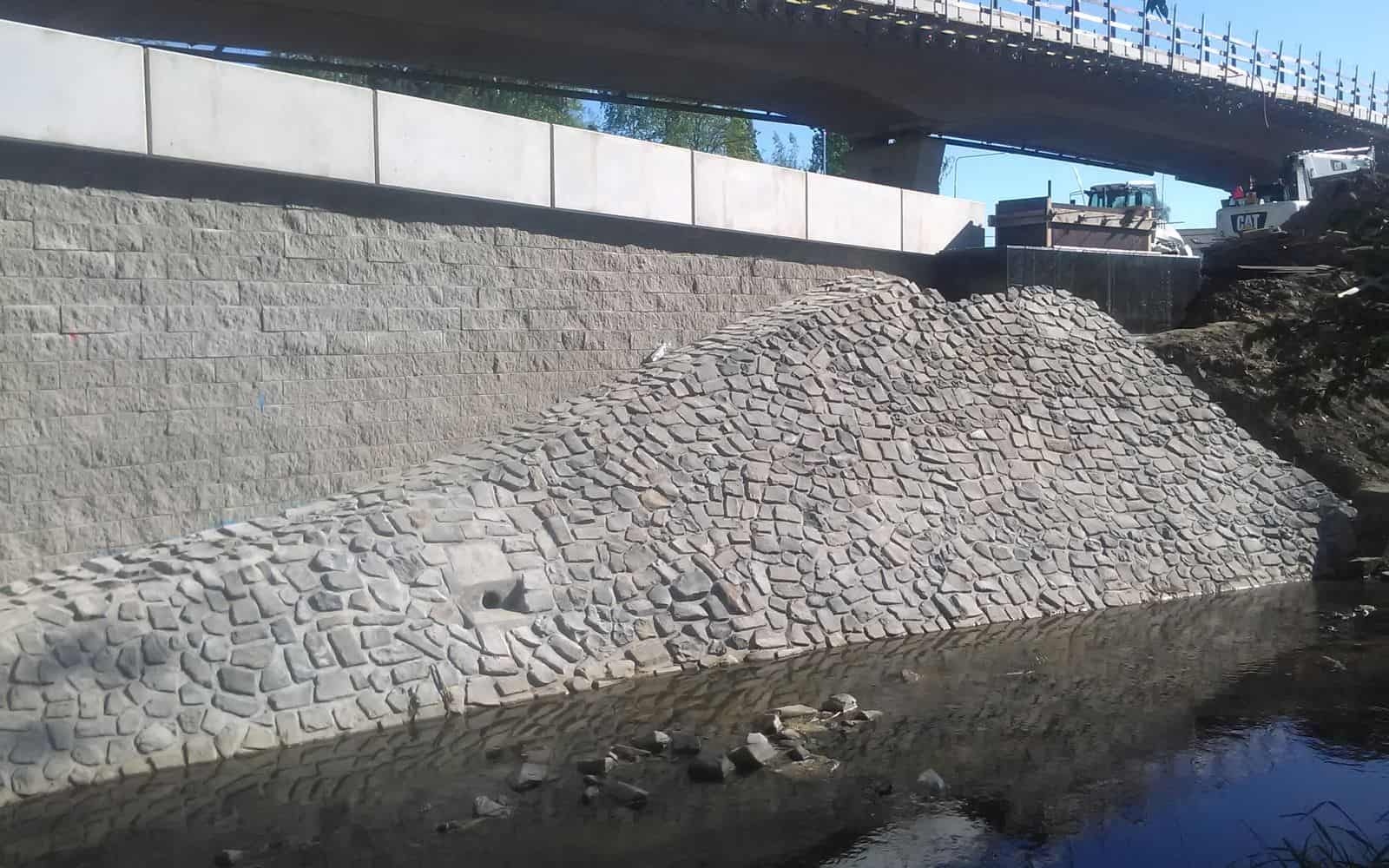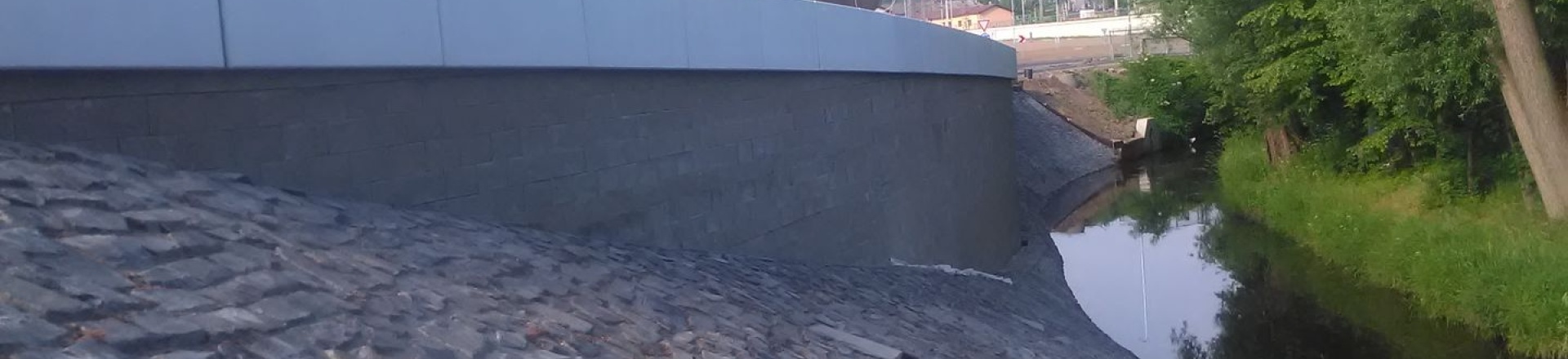 Děčín - Vilsnice, opěrná zeď z vyztužené zeminy podél Jílovského potoka