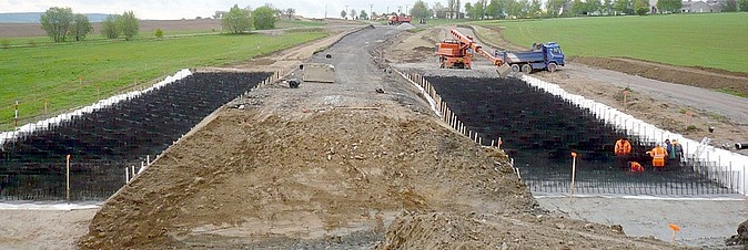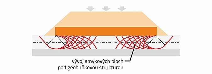 Geobuňková struktura pro zakládání násypů na měkkém podloží