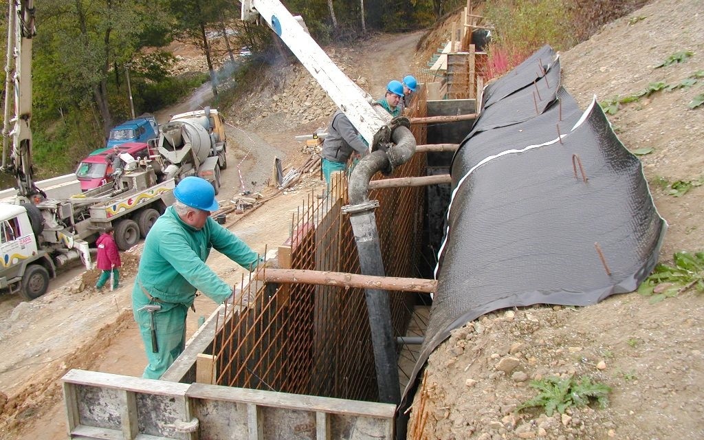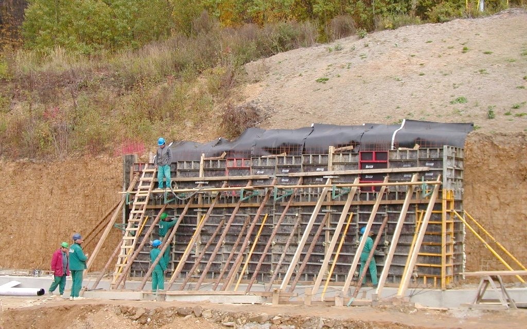 Ve svažitém terénu bylo při budování přístupové komunikace k vlakovému nástupišti nutno vybudovat zárubní zeď. S ohledem na geomorfologii a výškové převýšení terénu byla zárubní zeď navržena jako tížní betonová. U konstrukce bylo nutné zajistit bezpečné odvedení srážkových vod a různých zvodní tak, aby nedocházelo ke zvýšenému namáhání na opěrnou stěnu hydrostatickým zatížením.