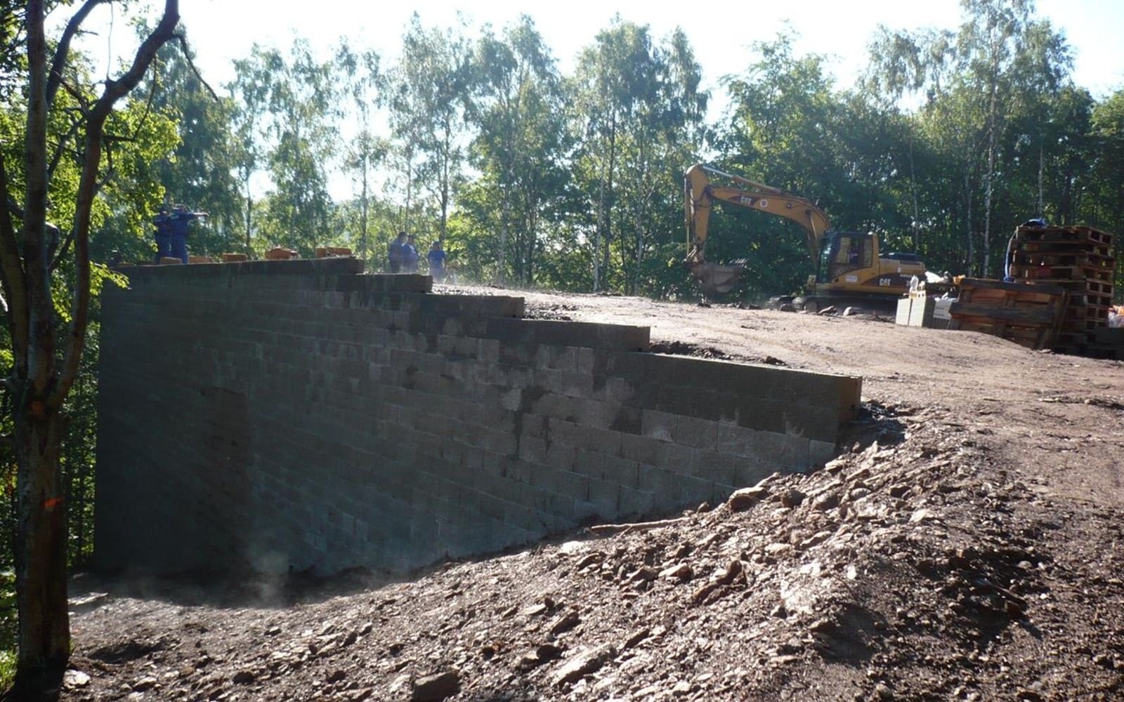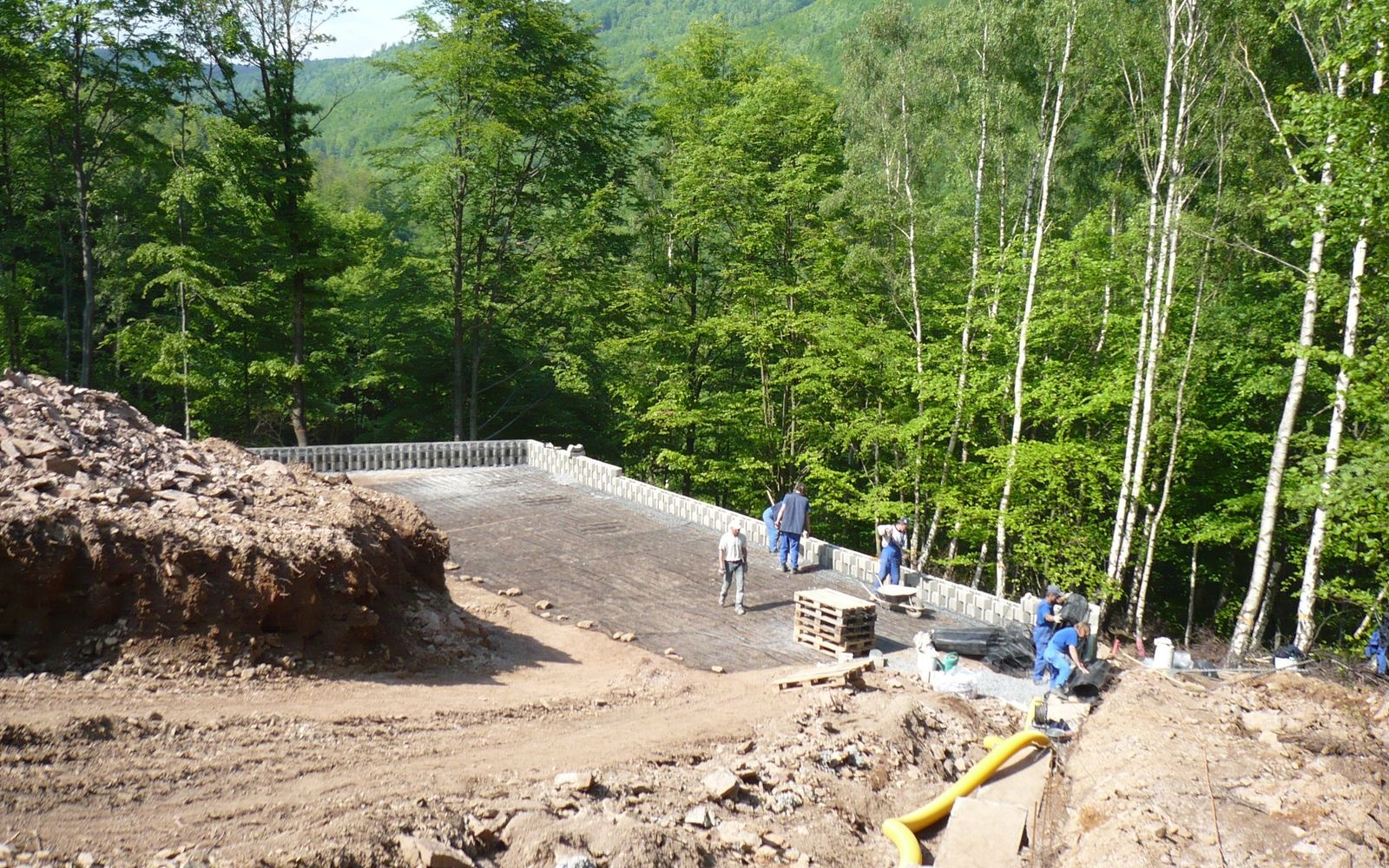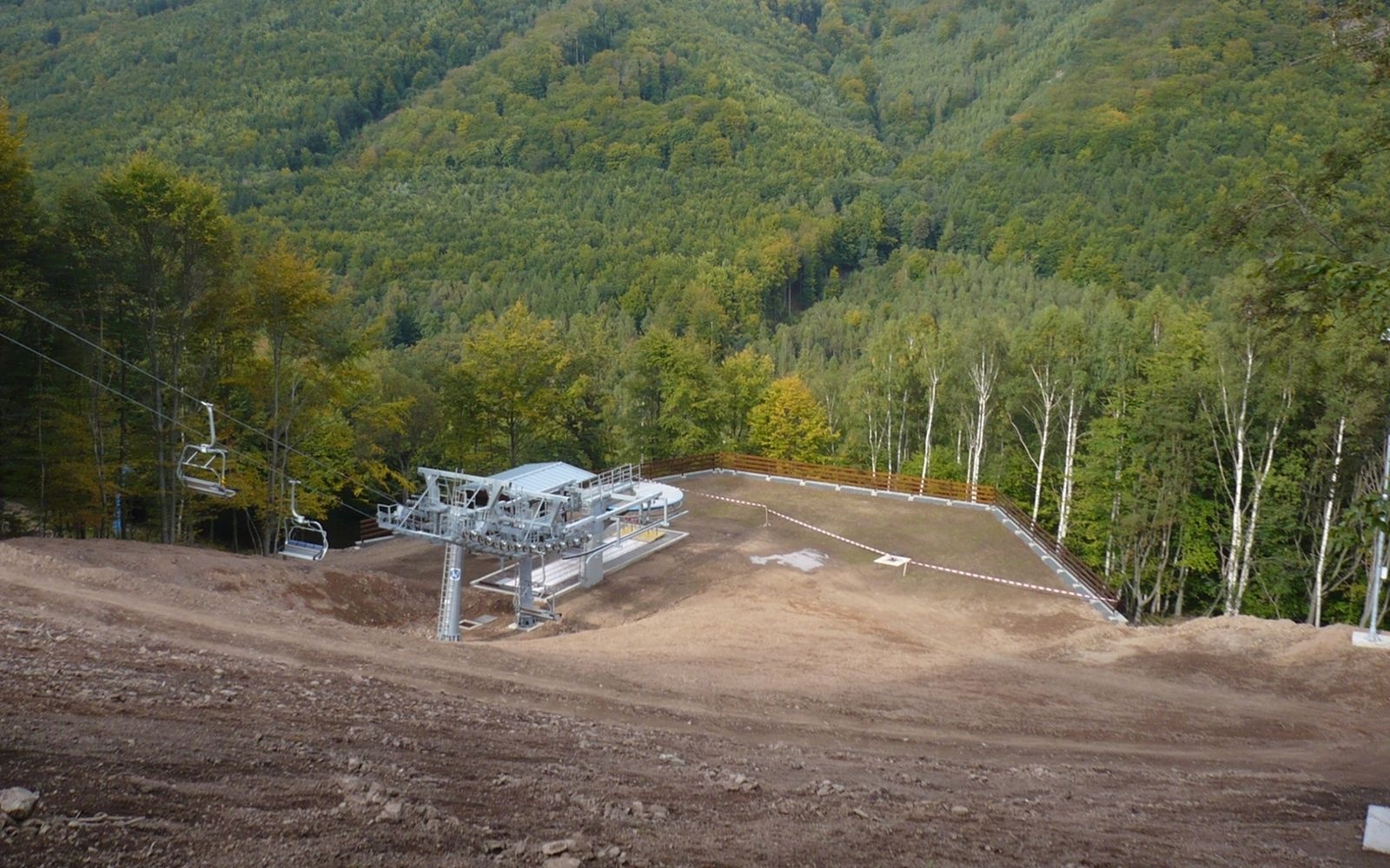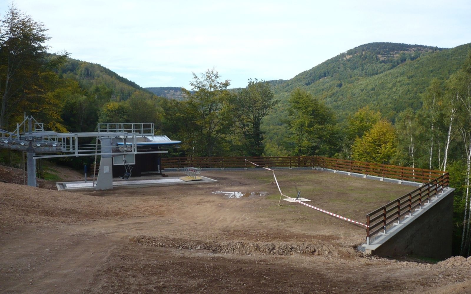 Při rozšíření sportovního areálu Klíny došlo k prodloužení svahu s vybudováním nové lanové dráhy o délce 600 m a převýšením 140 m. V tomto prudkém svahu bylo nutné vybudovat s pomocí opěrné konstrukce dolní stanici lanovky s vyrovnanou nástupní plochou. V obtížném terénu si musel dodavatel poradit s náročnou koordinací zásobování materiály a pohybů stavební mechanizace.