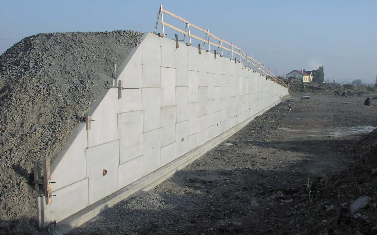 Opěrná zeď z velkoplošných panelů na dálnici D47 v Ostravě (rampa 8 MÚK Rudná)