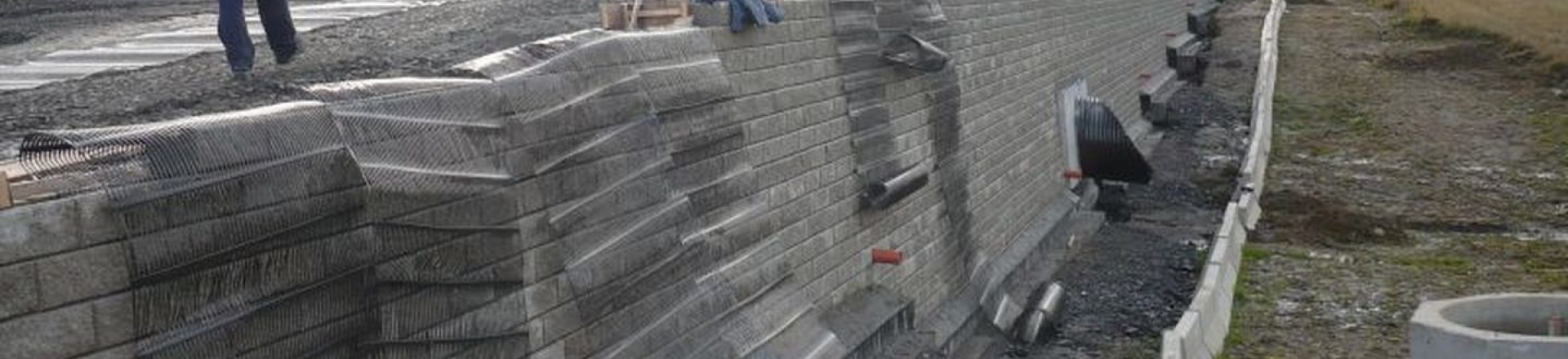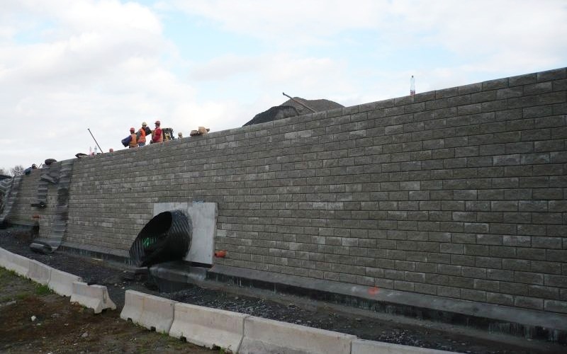 Opěrná zeď byla navržena z vyztužené zeminy s pevným lícem ze systému Tensartech TW1. Slouží ke zkrácení paty násypového tělesa silniční komunikace. Výška opěrné zdi se pohybuje od cca 1,5 m do 4,8 m. Sklon líce opěrné zdi je 86°. Nad korunou opěrné konstrukce je násypové těleso ve sklonu 1:1,5 s výškou kolem 7 m.