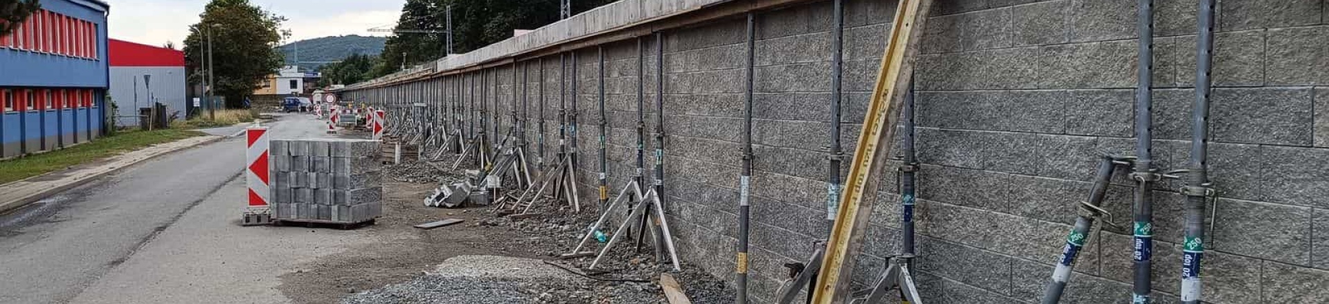 Novostavba opěrné zdi v rámci stavby „Elektrizace trati vč. PEÚ Brno-Zastávka u Brna“.
