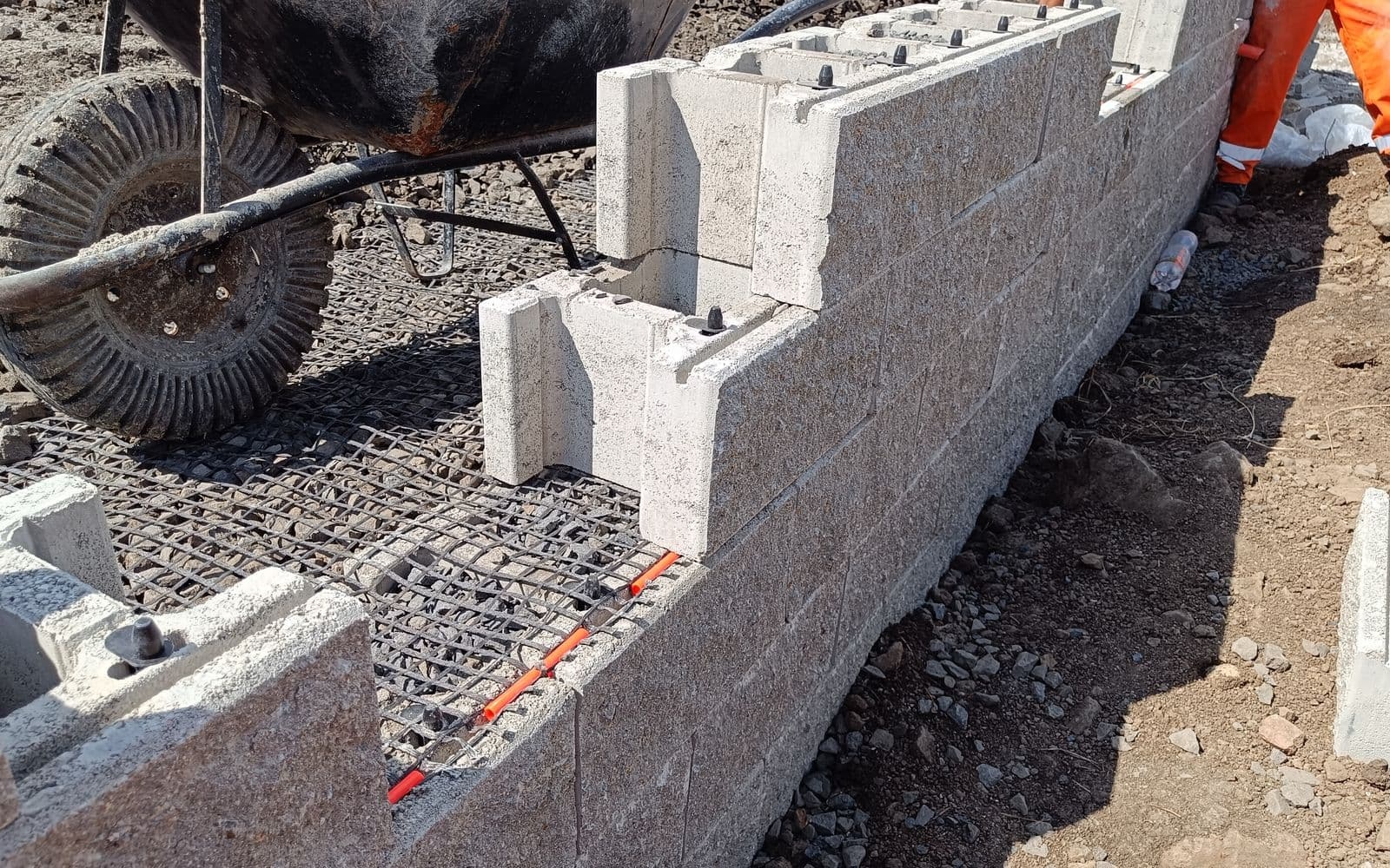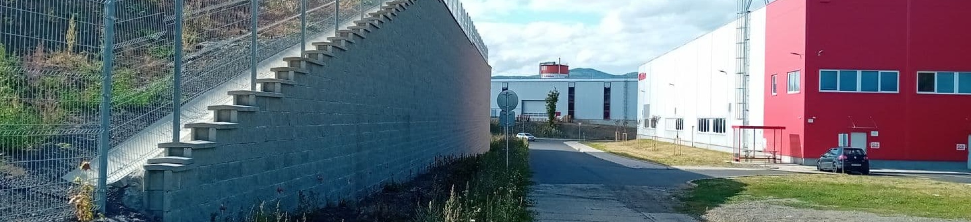 V rámci areálu výrobní haly bylo nutné pro vyrovnání terénních výškových rozdílů vybudovat po obvodu areálu více opěrných ŽB stěn.