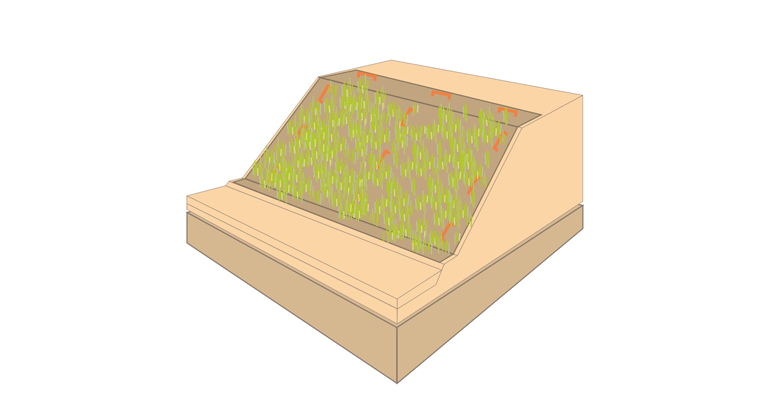 Pro zpevnění svahů u nichž hrozí eroze (nejedná se o vnitřní stabilitu celého svahu) nebo je splavována povrchová vrstva zeminy a nebo se již tvoří erozivní rýhy, je řešením zpevnění povrchu svahu pomocí sítí, georohoží a geobuněk. Jde o protierozní ochranu a to buď dočasnou, obvykle přírodní a ekologickou s funkční životností do 5 let. Nebo trvalou s životností vyšší než 10 let.