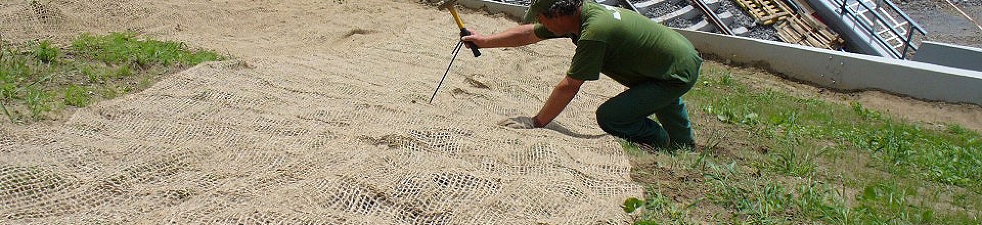 Dočasná ochrana svahu pomocí přírodních protierozních sítí, rohoží a textilií pomáhá zabránit na strmých svazích povrchové erozi a to obvykle do doby vzrůstu vegetace (traviny nebo popínavé keře). Jejich úkolem je zpevnit povrch svahu do doby, než se na něm vegetace uchytí a přebere protierozní funkci.Přírodní protierozní výrobky se vyrábí obvykle z kokosu, juty, popř. slámy nebo jiné biomasy. Jejich životnost se počítá na několik let, kdy se postupně samovolně rozloží.