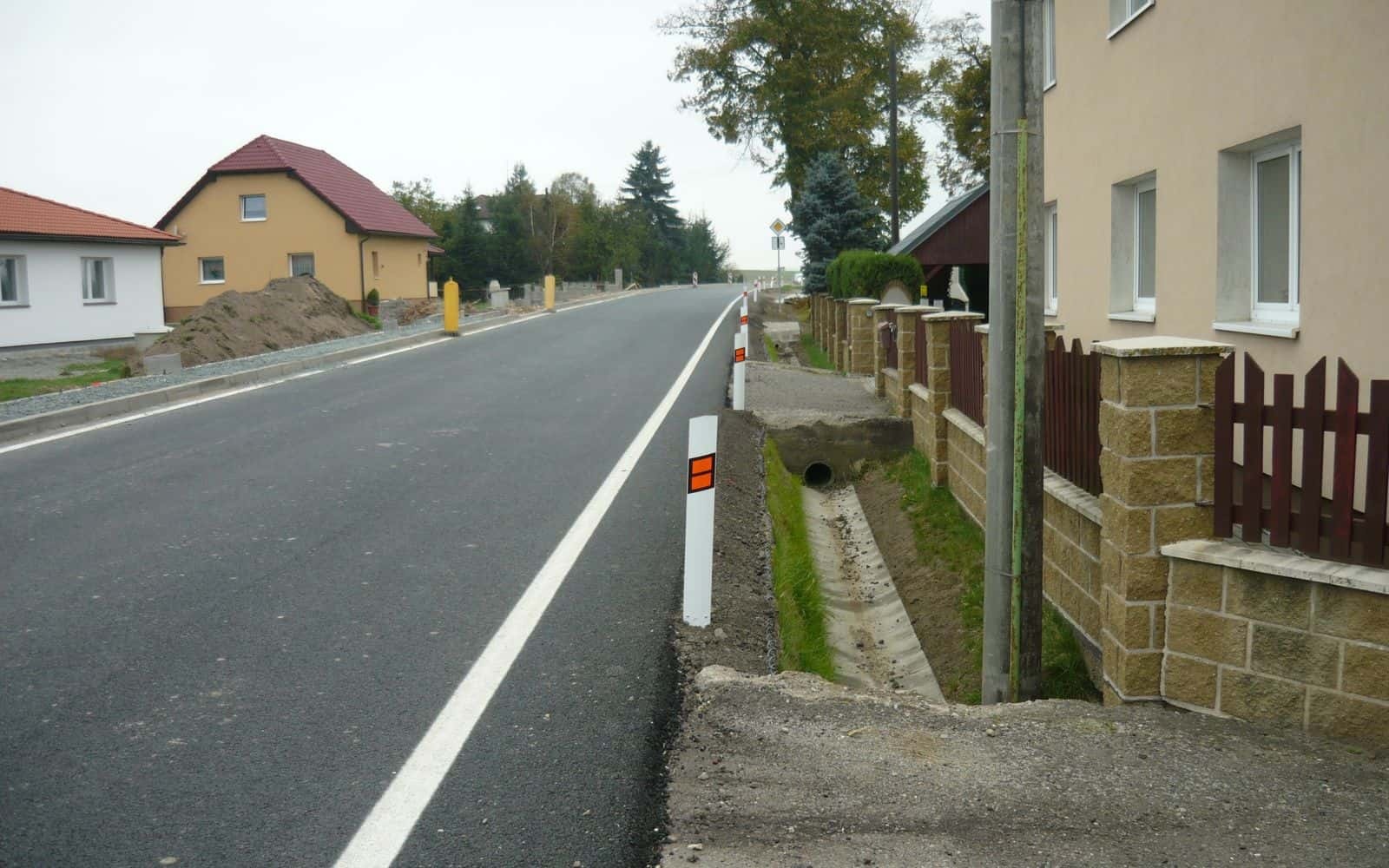 V obci se rekonstruovala a rozšiřovala silnice. Na zpevnění krajnice se použil systém Shoulder se zeleným lícem. V lícovém koši je umístěna protierozní kokosová georohož s travním osivem a humózním materiálem.