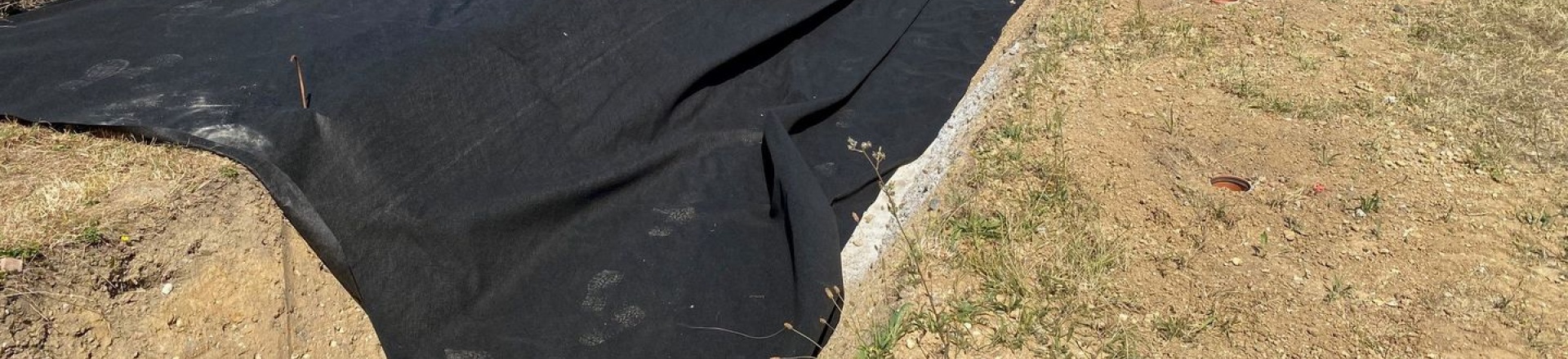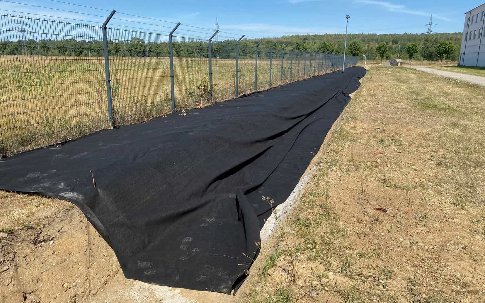 Dostatečně odolná geotextilie odděluje v německém městě Rötha ve vsakovacím příkopu kamenný obklad od rostlé zeminy.