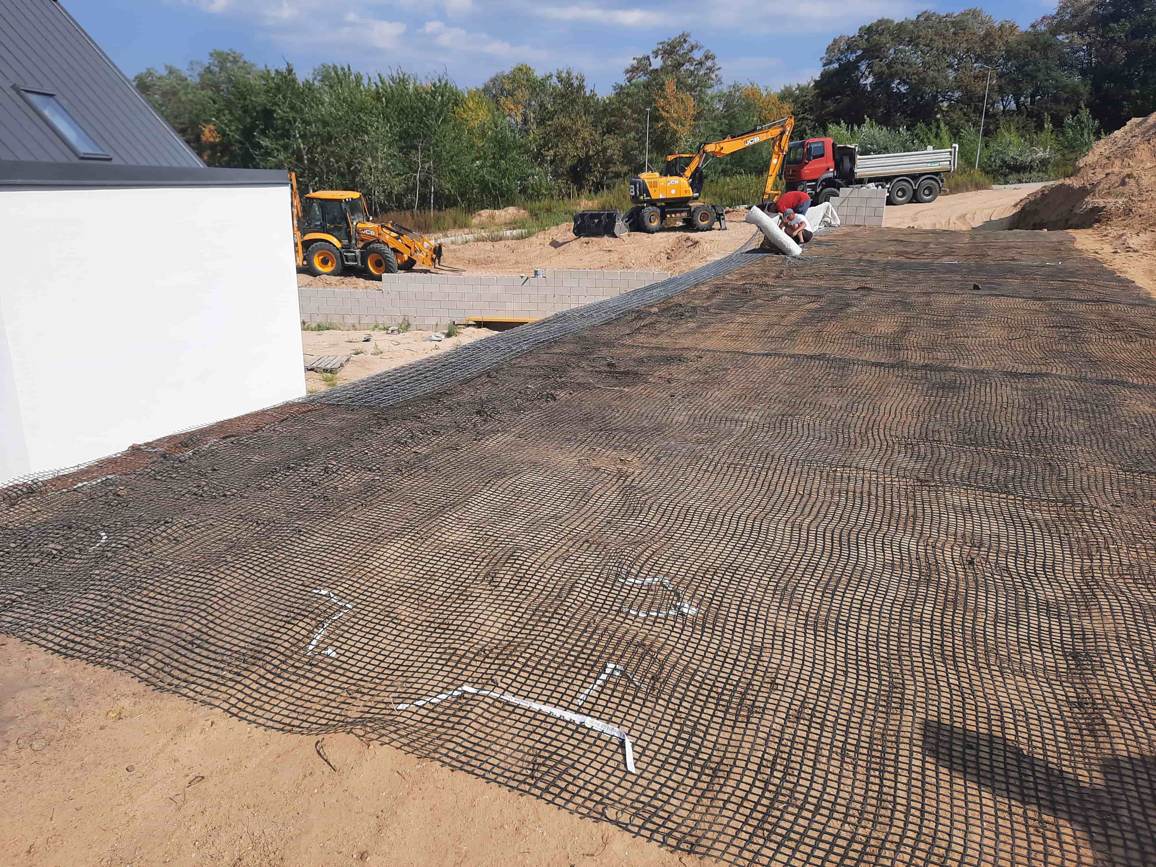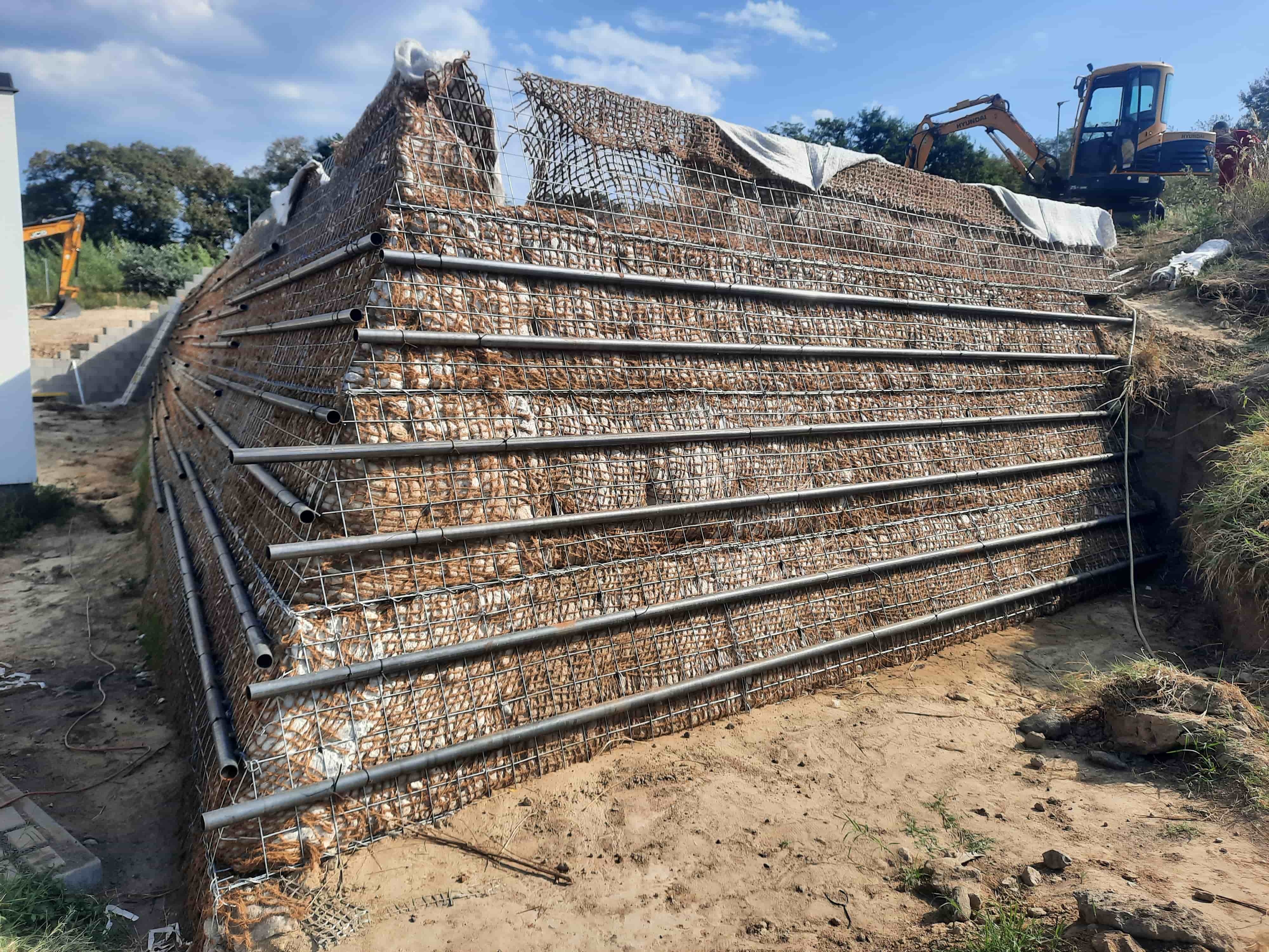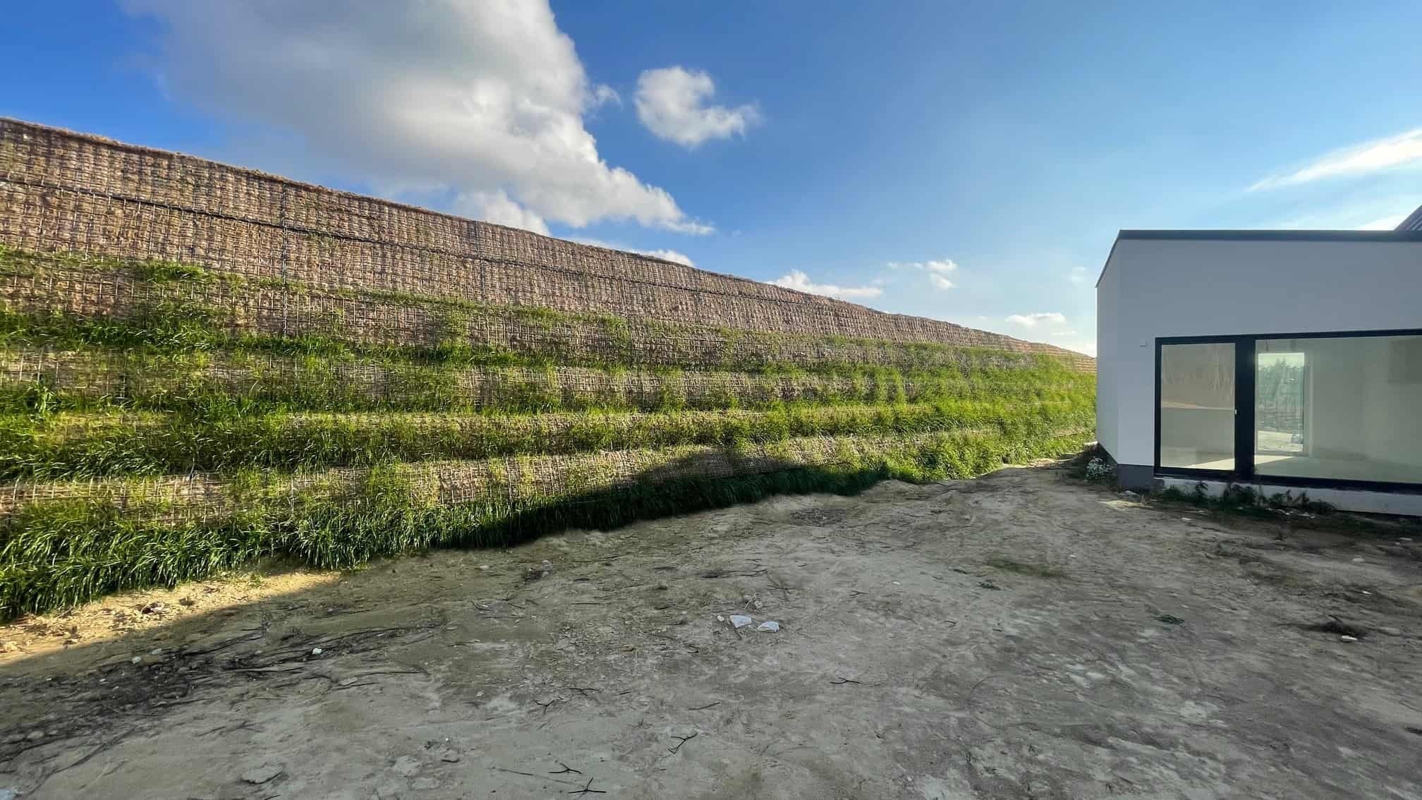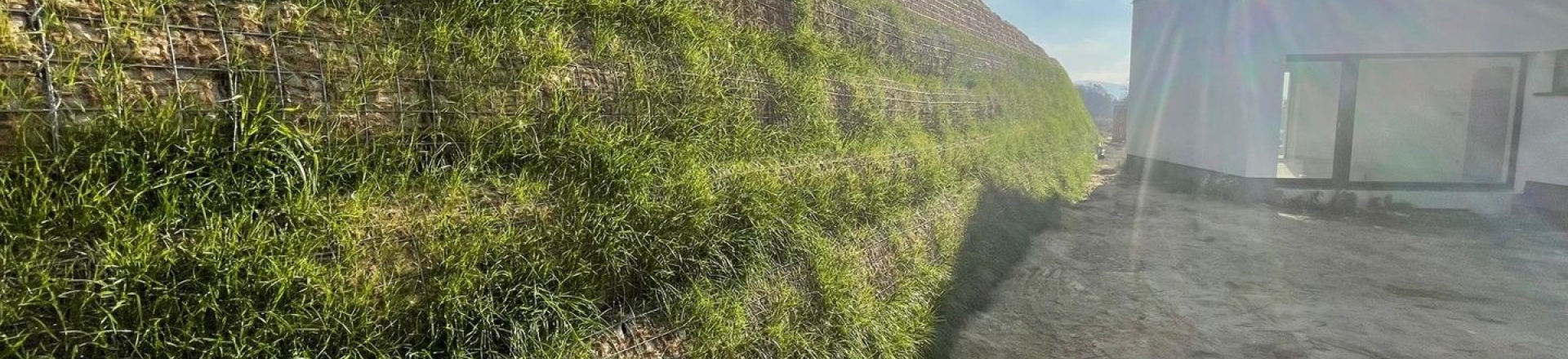 Vyrovnání pozemků pro výstavbu rodinných domů pomocí vyztužených strmých svahů.