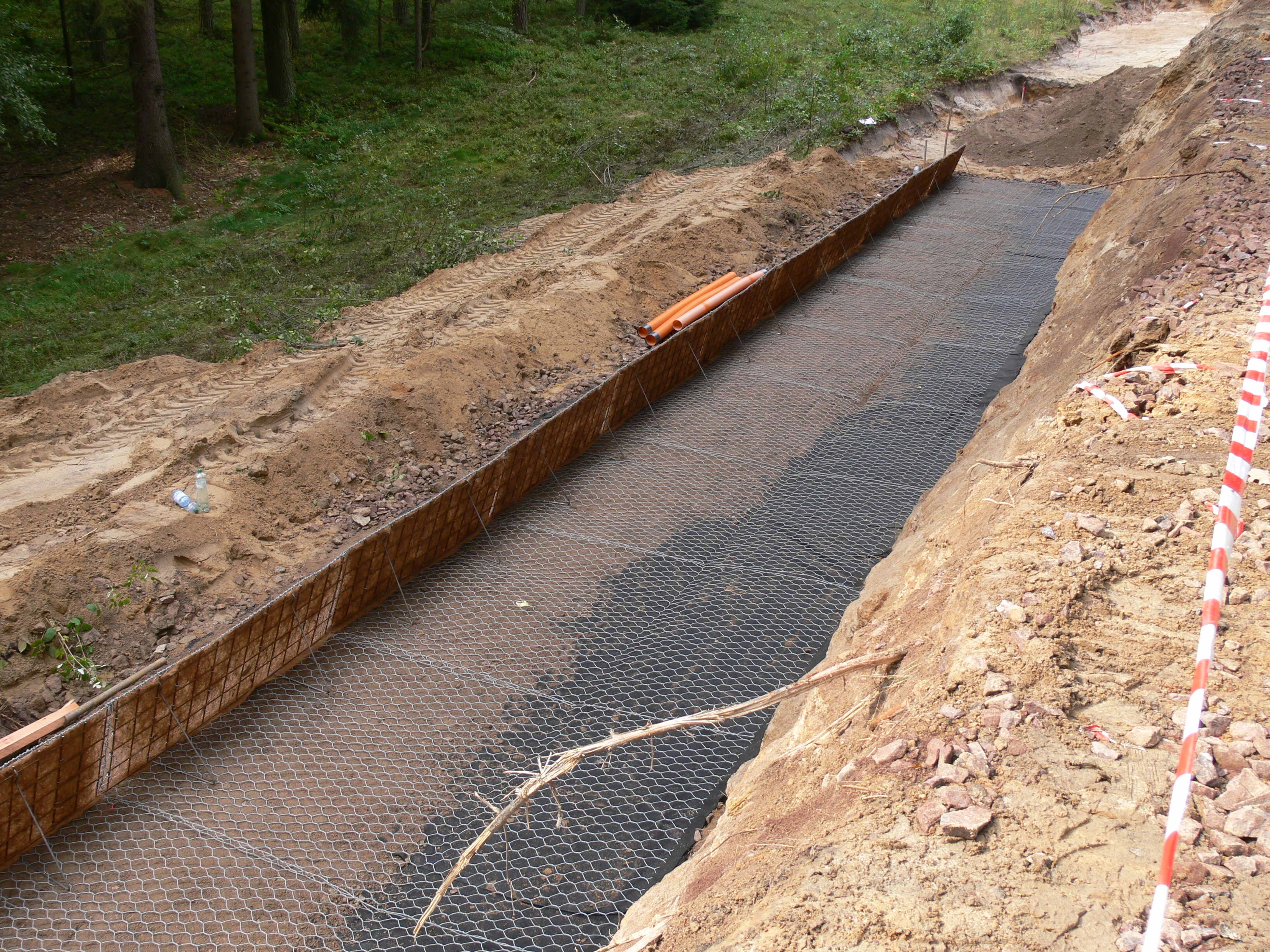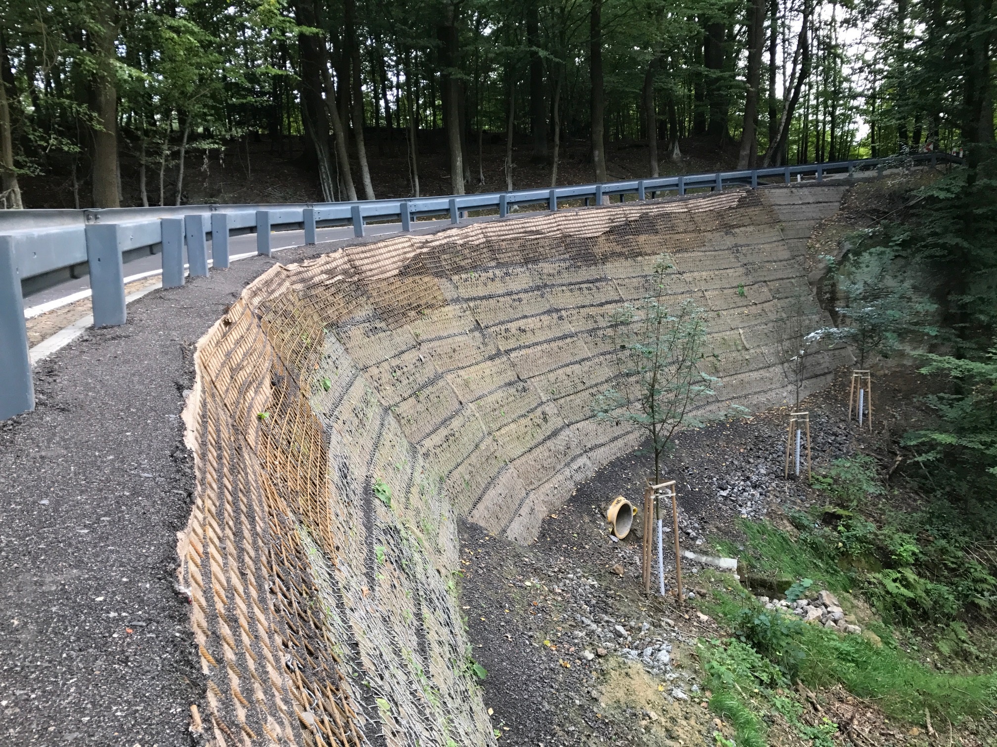 Při rekonstrukci komunikace III/28115 bylo navrženo její rozšíření za účelem osazení silničního svodidla podle stávajících platných předpisů. S ohledem na nedostatek místa byla zvoleno řešení pomocí vyztužené zeminy se sklonem líce 70°, které nahrazuje stávající kamennou zeď.