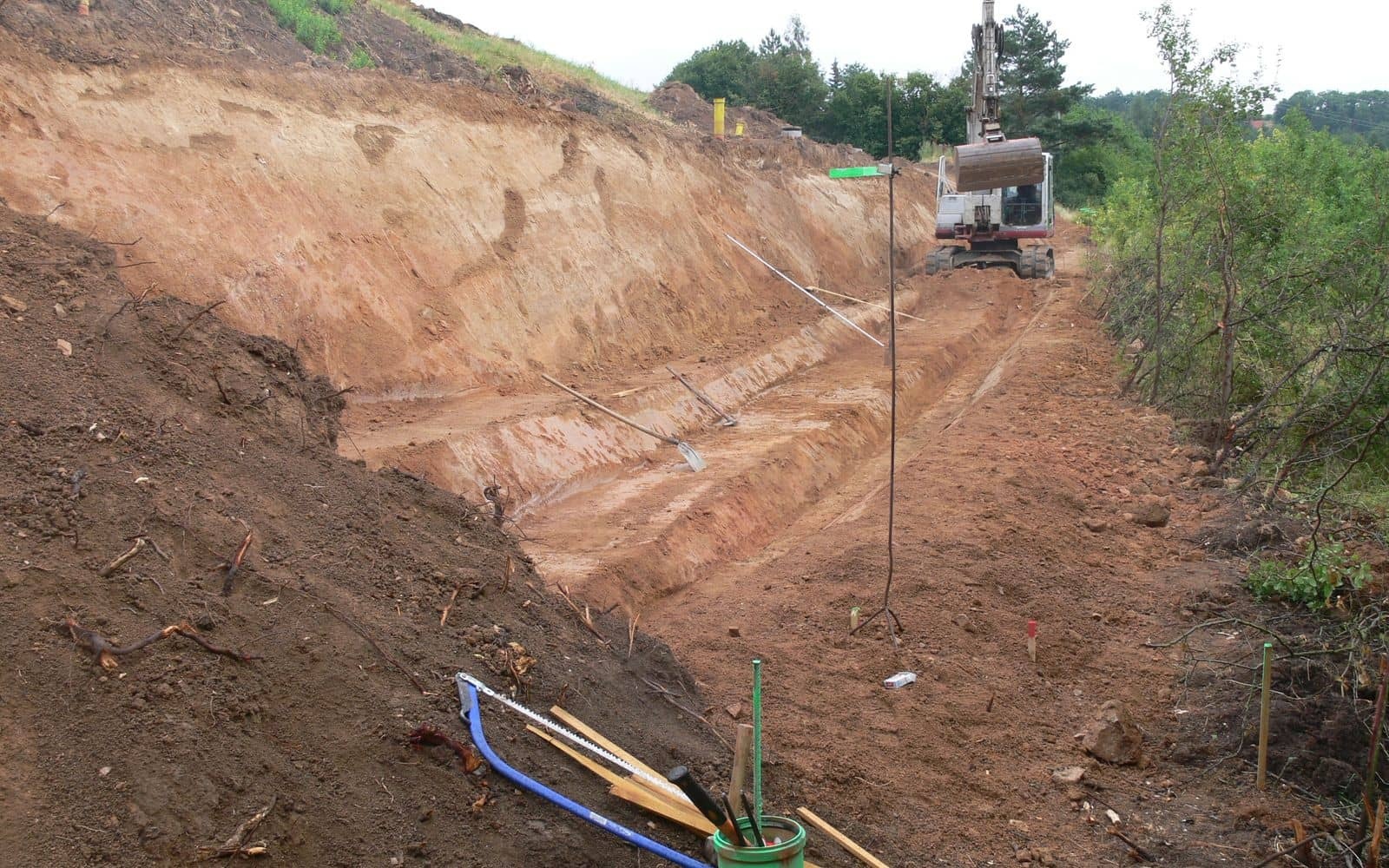 Na svažitých parcelách plánoval investor výstavbu rodinných domů, proto bylo nutné pozemek vyrovnat. Svah byl ve sklonu 13-18°. Projektanti se rozhodli pro konstrukci z vyztužené zeminy s lícem z kameniva ve sklonu 80°. Na této konstrukcí je ještě nadsypán vyztužený svah ve sklonu 1:1.