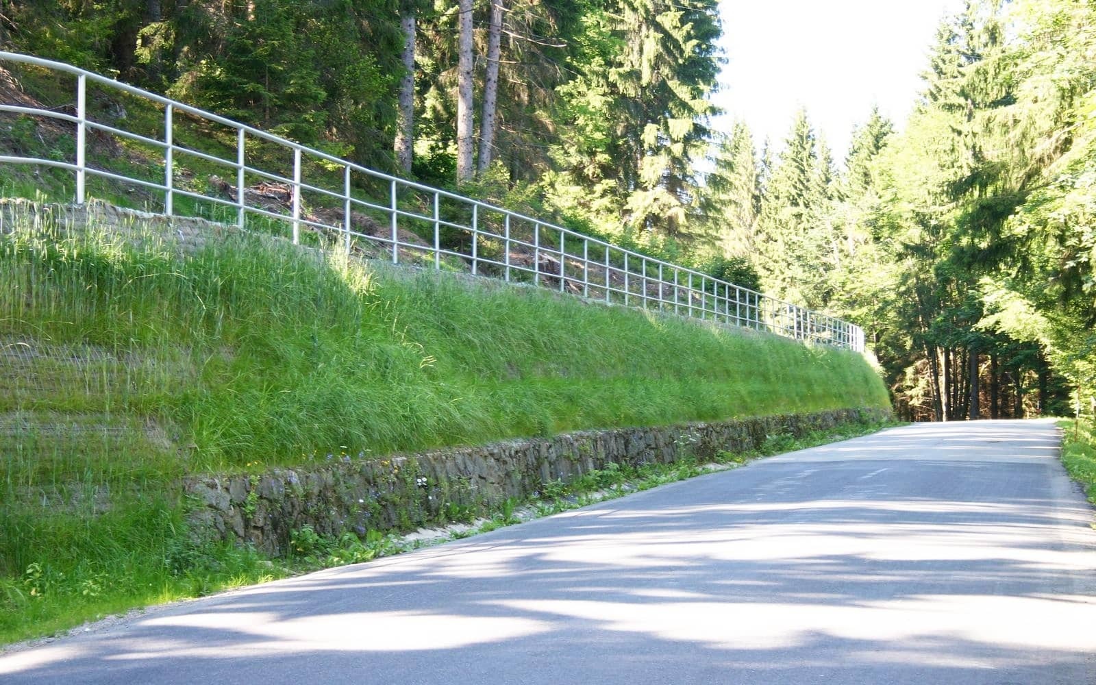 Pro větší bezpečnost cyklistů na frekventované komunikaci bylo navrženo výškové oddělení vlastní silnice a plánované cyklostezky. Na stávající kamennou zídku byl vystavěn vyztužený svah o délce 420 m a výšce až 3,5 m. V koruně svahu bylo osazeno zábradlí pro zvýšení bezpečnosti cyklistů.