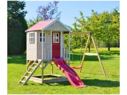 Wendi Toys dřevěný domek na chůdách Alpaka | s červenou skluzavkou, houpačkou a pískovištěm | Natur | 290x350x242 cm