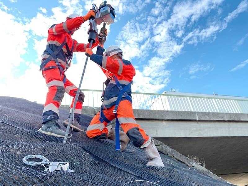 Lubno 2024, zářezový svah stabilizovaný příklepem hnanými zemními kotvami