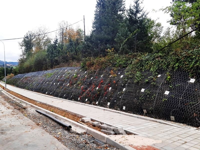 Původní varianta železobetonové zdi byla kvůli nákladům pro investora prakticky neproveditelná. Z tohoto titulu byla opěrná zeď nahrazena mechanickými zemními kotvami. Tato technologie několikanásobně zlevnila celé technické řešení zajištění svahu a v konečném důsledku umožnila realizaci záměru výstavby kanalizace a rozšíření komunikace. Realizace stavby začala na jaře 2024 na úseku 290 m se sklonem svahu 45–60° a výškou 3–6 m. Zhotovitel optimalizoval instalaci během ověřovacích zkoušek za účasti investora, projektanta, výrobce i dodavatele.