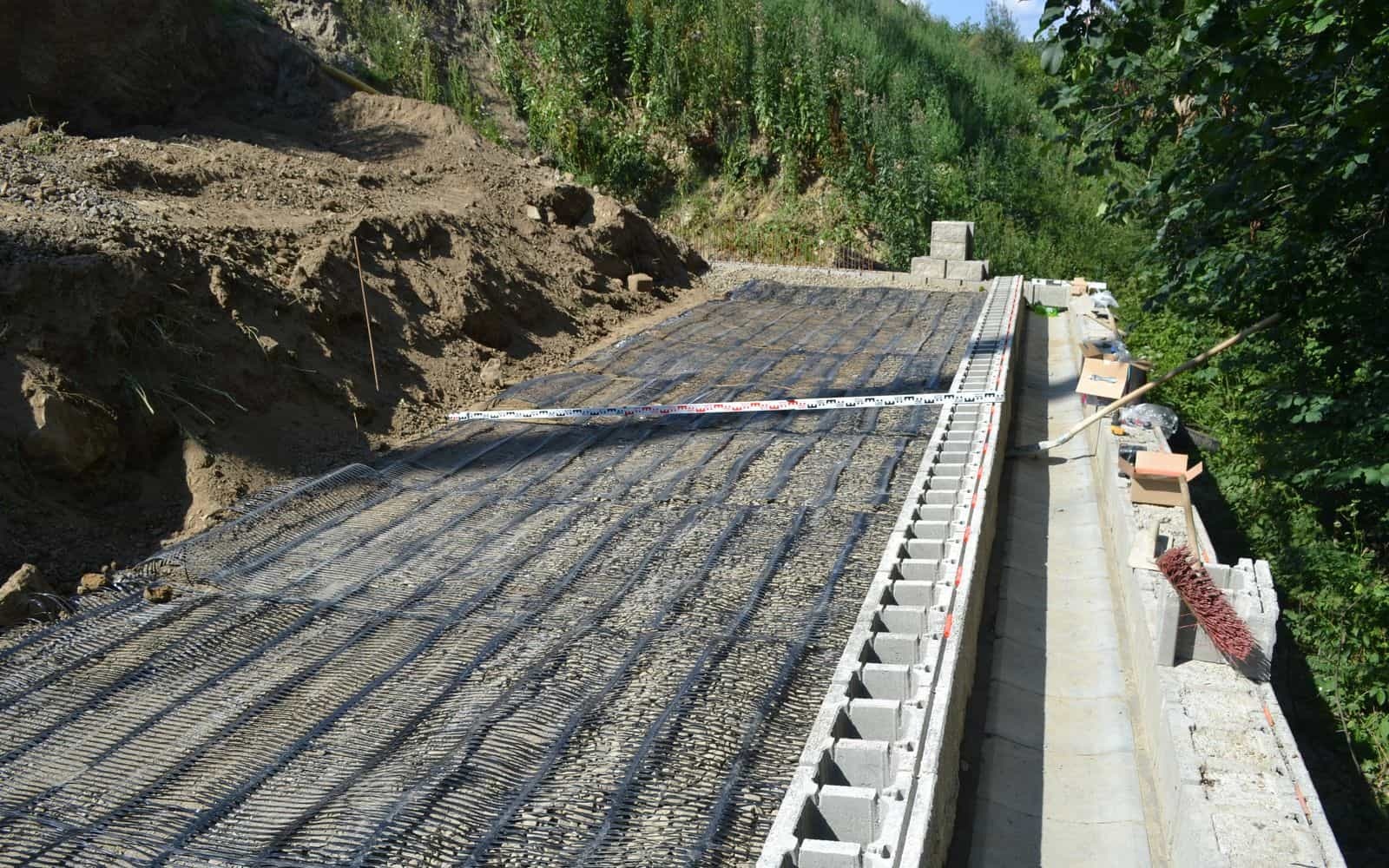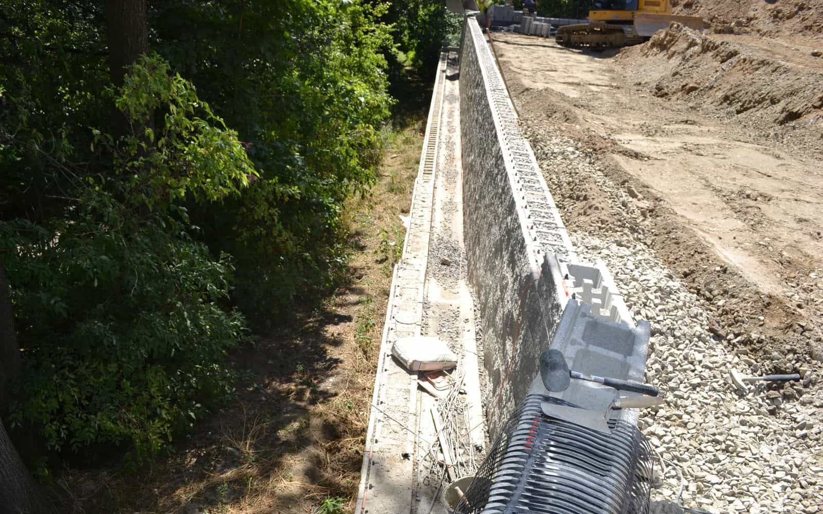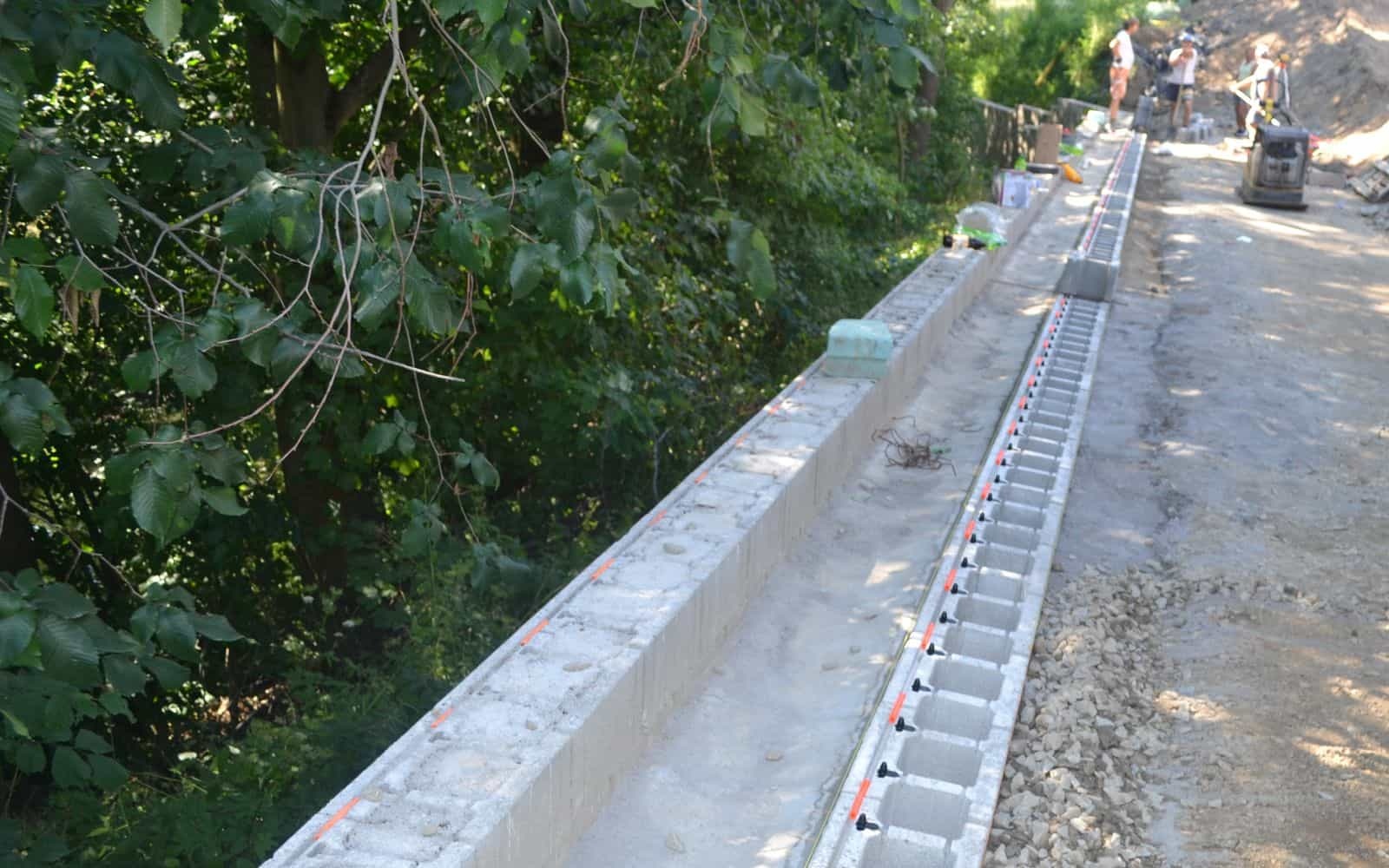 Při stavbě rodinného domu ve Žďáru nad Sázavou vznikla potřeba na vyrovnání svažitého pozemku. Na hranici pozemku nacházející se blízko vodního toku byla proto navržena opěrná zeď z vyztužené zeminy.