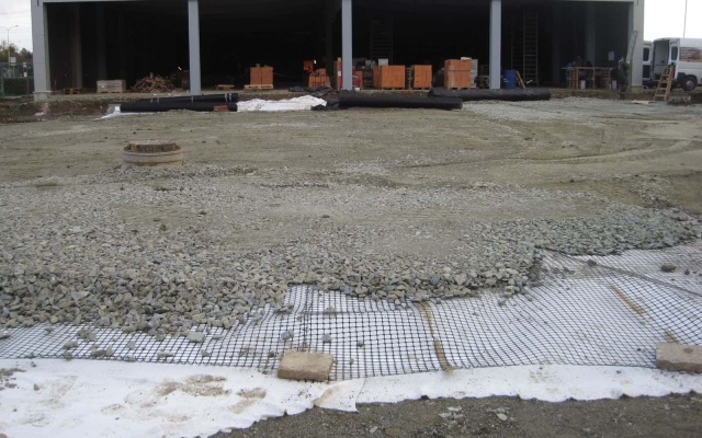 Při stavbě supermarketu bylo nutné vyřešit problém s neúnosným podložím pod parkovištěm.