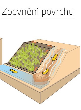 V případě, že je vlastní stabilita svahu v pořádku, ale dochází k rozrušování jeho povrchu, jsou na místě opatření pro povrchové zpevnění svahu, které se také nazývají protierozní ochrana. Při těchto opatřeních se povrch svahu zpevňuje pokrytím sítěmi, rohožemi, matracemi nebo geobuňkami za účelem zabránit povrchové erozi způsobené nejčastěji proudící vodou nebo namáháním větrem.
